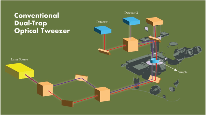 Decades after the invention of optical tweezers, some designs still face the challenge of versatility for current applications. Interactions between trapped micron-sized particles, mechanical properties of biopolymer filaments, and force generation by protein nanomachines are most often researched in a dual-trap system, where two beams are used to control the trapped particles. But there is a problem: traditional systems rely on detecting light that passes through the trapped particles, and this method has limitations.