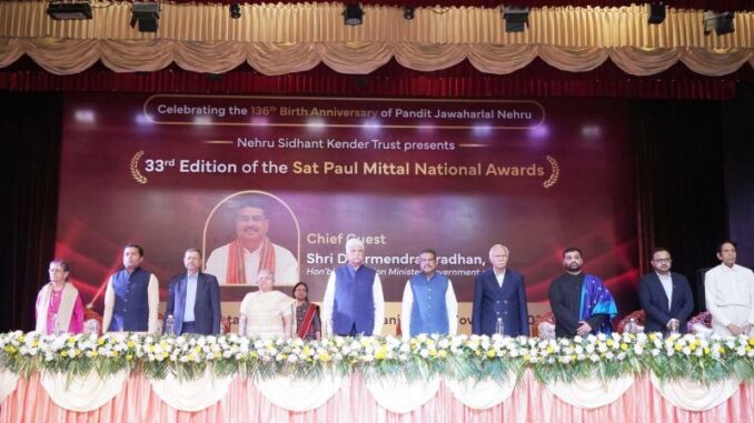 The Nehru Sidhant Kender Trust, established in 1983 by Late Shri Sat Paul Mittal, presented the Sat Paul Mittal National Awards 2025 in Ludhiana. Shri Dharmendra Pradhan, Hon’ble Minister of Education, Government of India, graced the ceremony as the Chief Guest and felicitated the awardees and distributed the scholarships. Also, present was Mr. Rakesh Bharti Mittal, President, Nehru Sidhant Kender Trust.